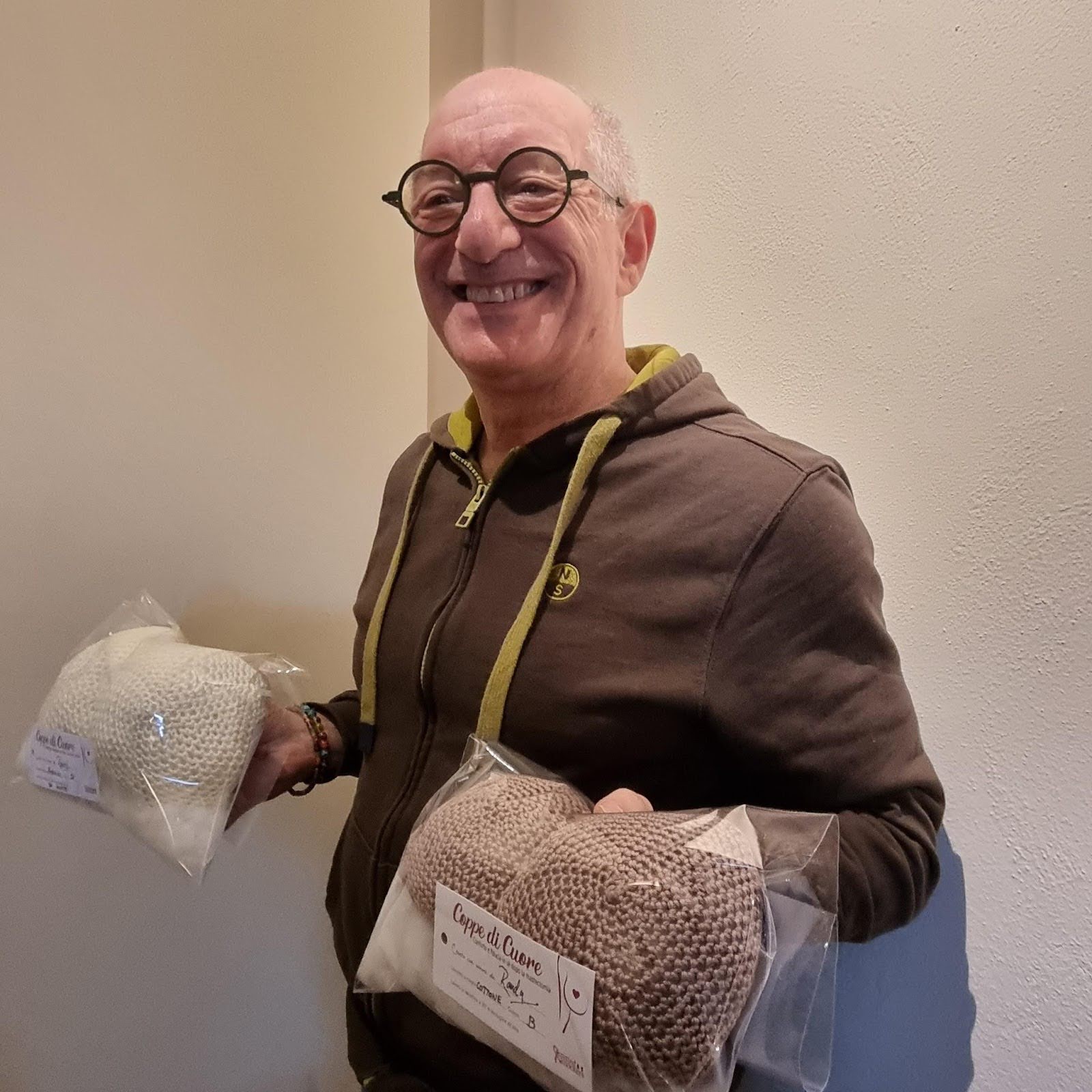 Ho passato la maggior parte della mia vita come violinista alla Sinfonia di Londra dove avevo tante occasioni di realizzare copertine all’uncinetto per i neonati dei miei colleghi. Adesso pensionato, abitando a Lucca e un sopravvissuto di cancro me stesso, sono felicissimo di aiutare con questo meraviglioso progetto.